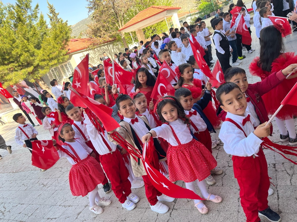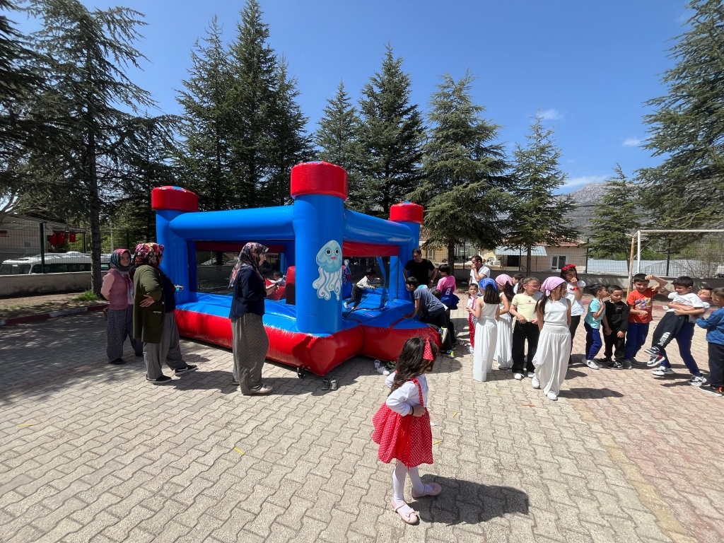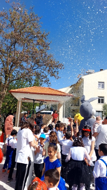 23 Nisan Ulusal Egemenlik ve Çocuk Bayramı okulumuzda coşkuyla kutlandı. Okulumuz öğrencileri hazırlamış oldukları gösterileri sundular ve yarışmalarda birbirleriyle kıyasıya mücadele ettiler. Tüm gün boyunca süren çocuk şenliğinde okulumuz öğrencileri ve misafir çocuklarımız doyasıya eğlendi. Şenlik kapsamında okulumuza şişme oyun alanları kuruldu, öğrencilerimize ve misafirlere karlama, patlamış mısır, pamuk şeker gibi ikramlarda bulunuldu. Kar makinesi gösterileri ve yüz boyama etkinlikleri devam ederken isteyen öğrenciler bu stantlarda zaman geçirdiler. Çocuklar, maskotlar ve palyaçolarla birlikte gün boyu eğlenceli anlar yaşadılar.